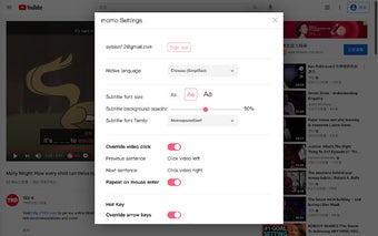 With momo English, you can watch any video on YouTube. The embedded webpage gives you access to YouTube's powerful features while utilizing all the learning tools provided by momo.